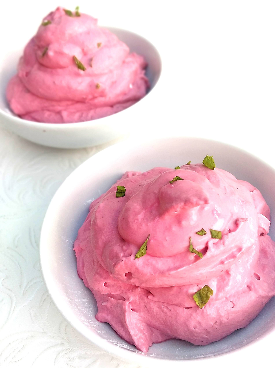 I’ve never grown out of loving mousse. When I was a kid it was a huge treat to have shop-bought dessert and I always chose mousse. We live near some fields with huge blackberry bushes so in late summer and autumn we gather up hundreds of blackberries to use in desserts and smoothies. Free food that becomes a sweet treat is perfection. It’s incredibly easy to make your own mousse and this luminous pink creation is a tart, sweet and fresh delight.
