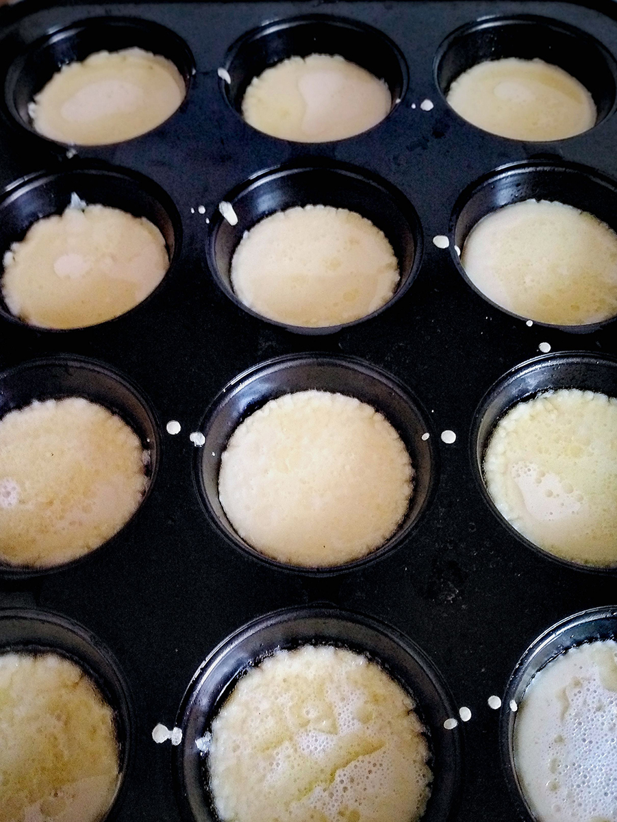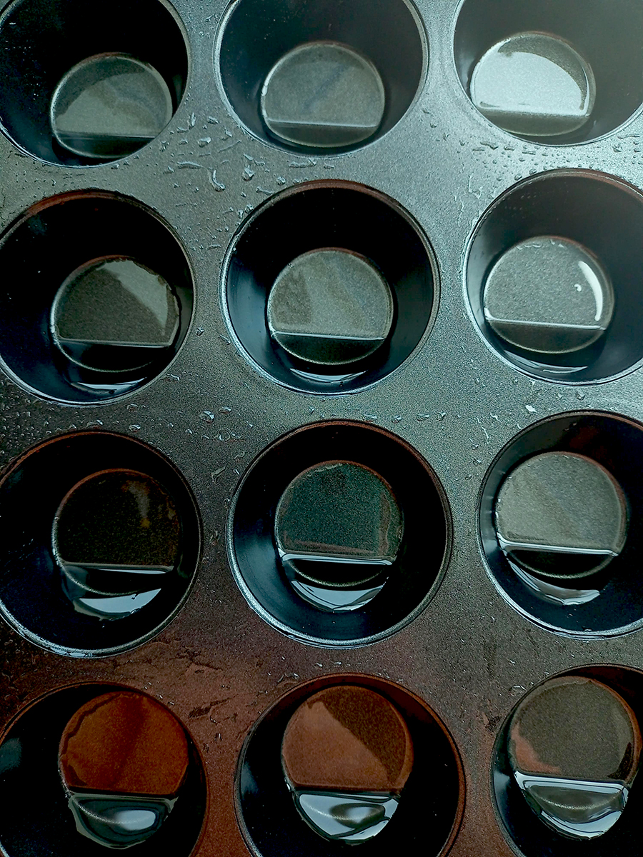 - Pre-heat the oven to 250°C (225°C fan) with the top shelf about 1/3 of the way down from the top. Put 1/2 tsp of veg oil in 12 muffin tin holes then put the muffin tin on the shelf for 7 minutes until the oil is literally smoking hot. Open the oven door, remove the muffin tray and close the door to keep the oven very hot.