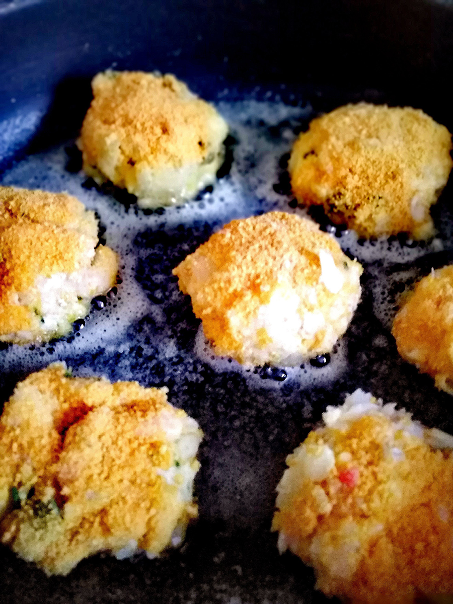 • Coat in the flour first, then the egg then the breadcrumbs then into the pan to fry until golden brown then gently turn over to cook the other side. Turn down the heat if the pan is getting too hot. Remove the cooked fishcakes to kitchen roll to remove excess oil then serve and squeeze over the lemon.