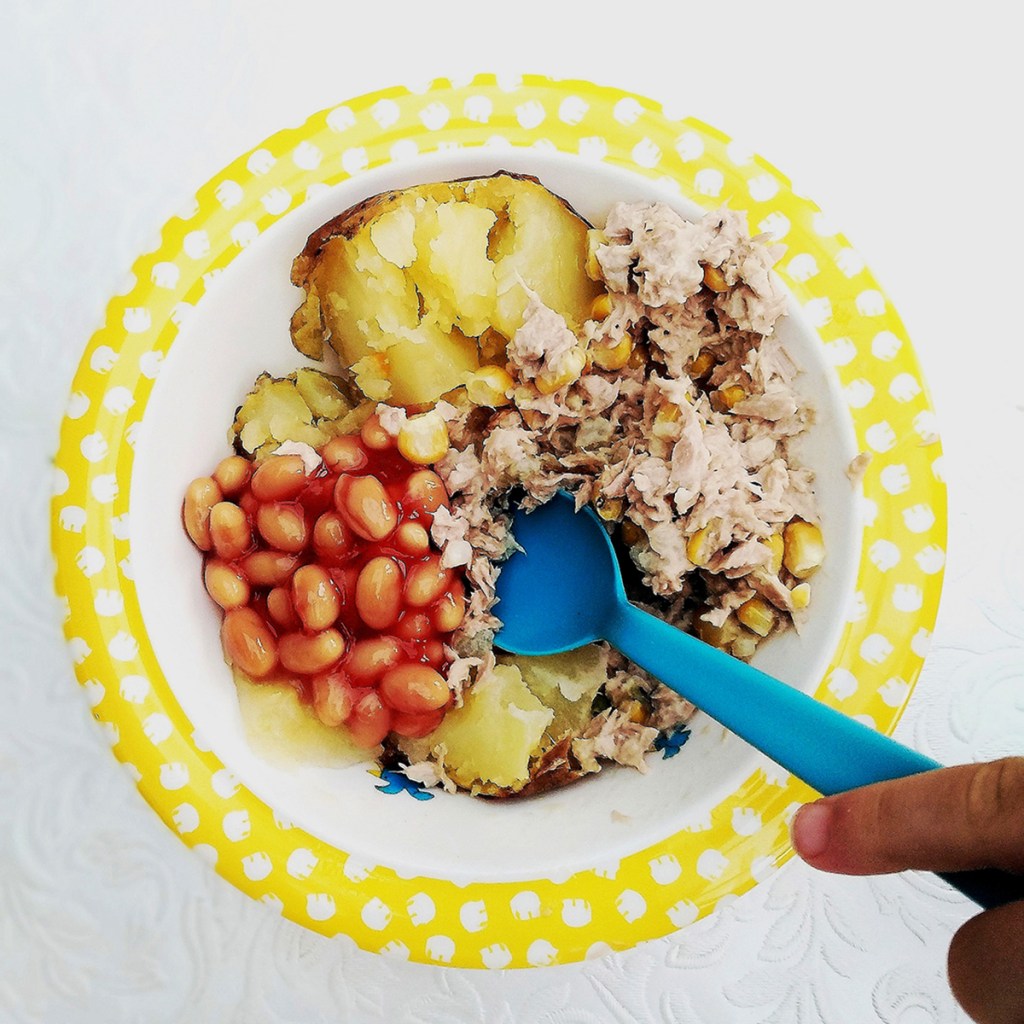 1 tin tuna, 2 tbsps mayonnaise and 1 small tin of sweetcorn