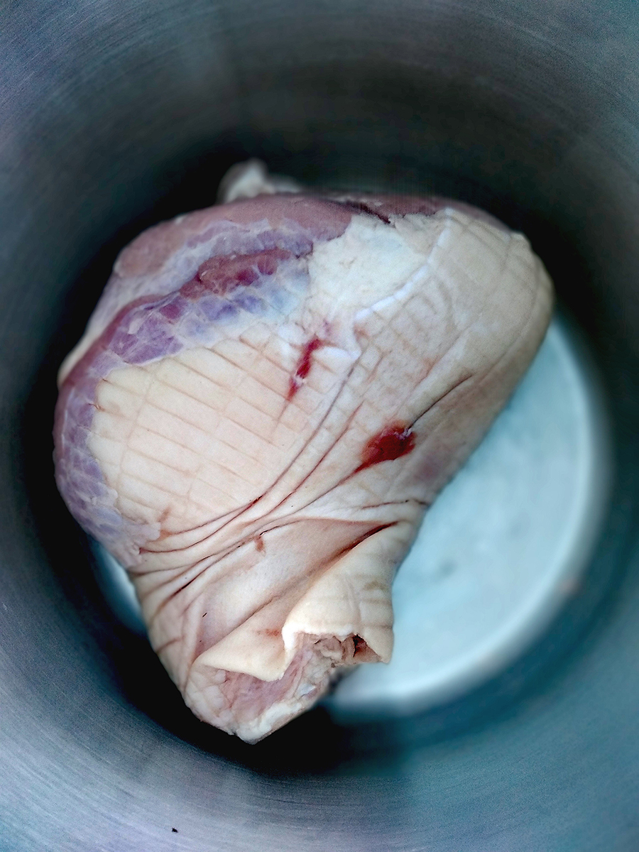 Fun Fact: A salted joint of pork leg becomes a gammon joint. A cooked gammon joint becomes a ham.