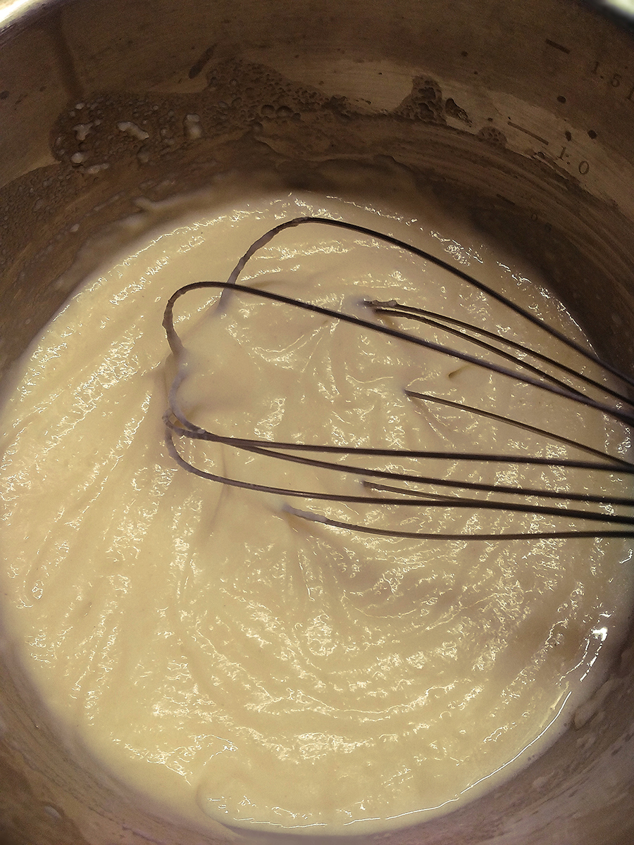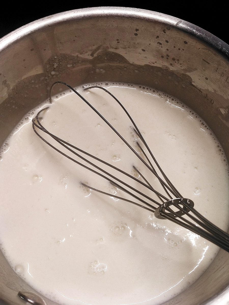 - Fill a large saucepan 3/4 with water and put on a medium high heat. While you’re waiting for the water to boil melt the butter in a milk pan on a medium high heat. Once it’s melted add the flour and whisk to combine. Cook this for 1 minute then gradually add the milk to make a roux (white sauce).