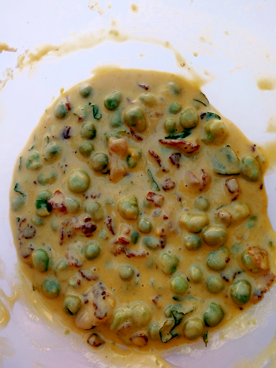I’m not going to apologise for my second veg+bacon recipe in one week because bacon and vegetables is just so good. These fritters are ridiculously delicious and easy to make. Tinned veg has a lot of nutrition and can be turned into really great meals. The marrowfat peas have such a great texture that goes brilliantly with the bacon. These make an ideal snack for watching a match on the telly or as a lunch with a salad and some avocado slices. I use gram flour (which is gluten free) to make the fritters which is ground up chickpeas. It’s available at most Waitroses and international food shops or online and it’s incredibly versatile.
