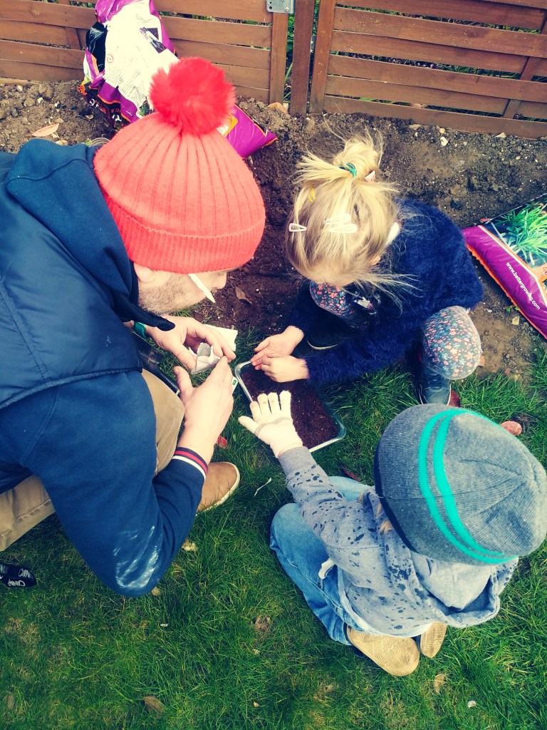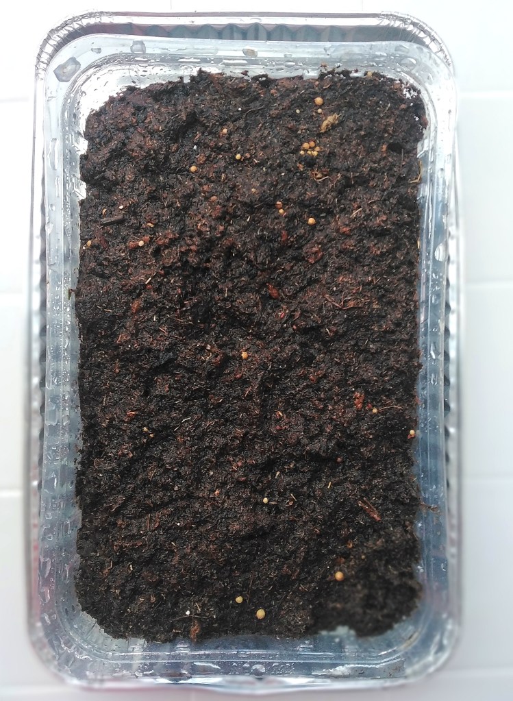 Put some potting compost in the container, don’t pack it in too tightly just firmed down gently with your hands. Scatter some seeds over the soil then sprinkle over with a thin layer of compost and water with a gentle spray to give the seeds a kick start.