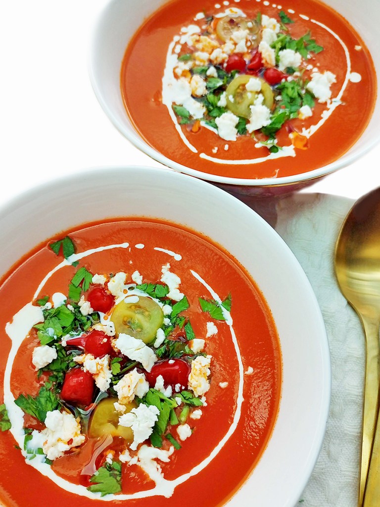 I don’t cook every single meal from scratch but I tend to add my own twist to pre-made dishes either to add more flavour, texture or substance. I love making soup but I also buy tins of good soup that keep for ages on a shelf for the days that I was a veggie hit without the effort. You can tart up soup from a tin by adding toppings that boost the flavour and texture. Choose toppings that match or compliment the flavour of the soup. To turn tinned soup into a more lavish meal I buy a wheel of camembert then warm it up along with a ciabatta loaf then serve them alongside the soup with a big bunch of grapes.