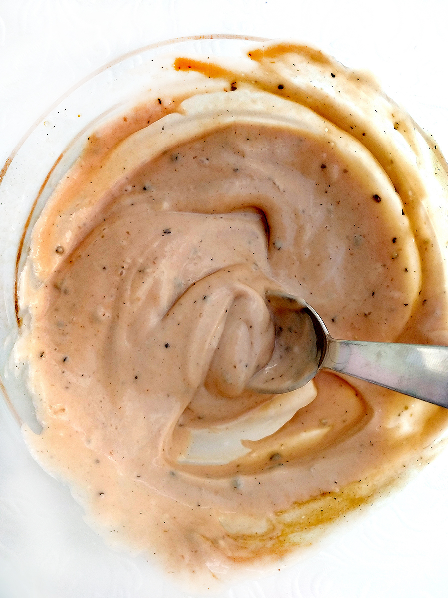 - Shred some lettuce and either place it straight on the bread or toss it in the sauce then assemble the sandwich and demolish.