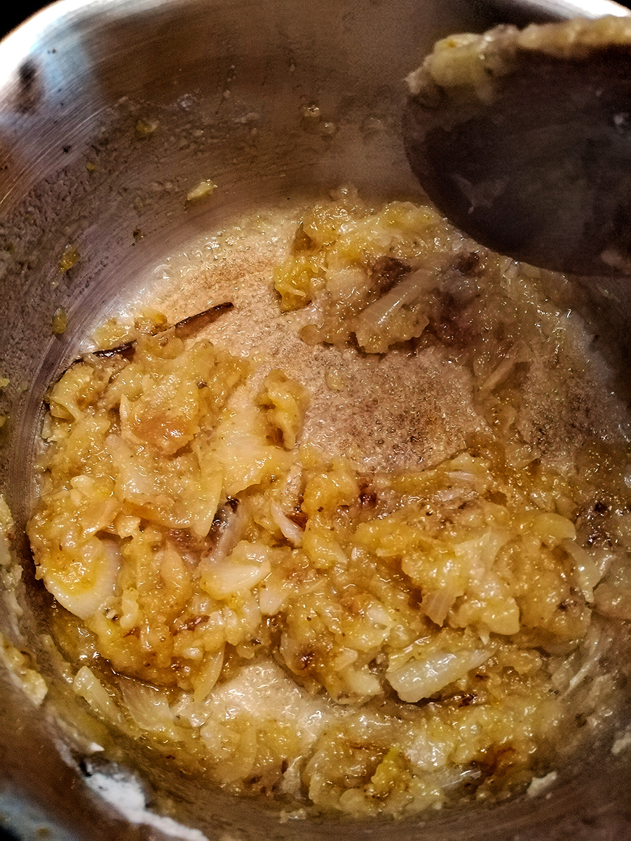 - If you want to make gravy scrape the onions, garlic and fat from the bottom of the tray and put into a saucepan with 1 tablespoon of plain flour on a medium high heat.