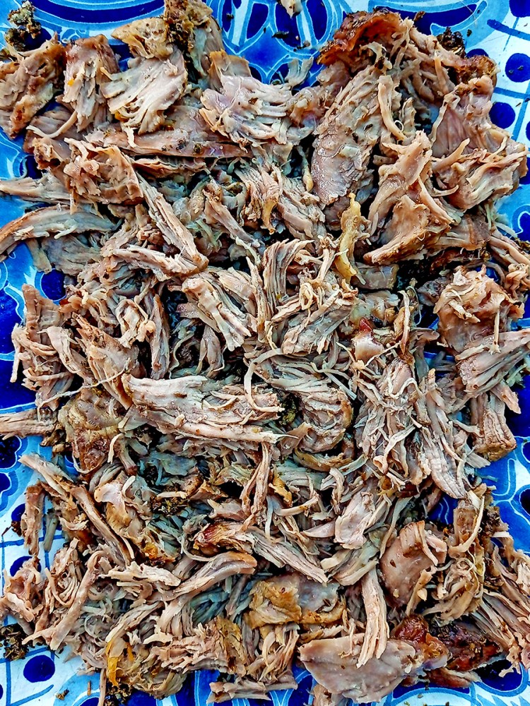 - Remove the twine then remove the fat before shredding if you want to or leave it on then use two forks to pull apart the lamb then squeeze over the juice of a lemon.