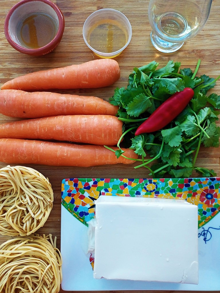 - Use tongs to remove the carrots and chillies from the pickling liquid then add them to the noodles along with roughly chopped coriander. Toss the veggies and noodles together.