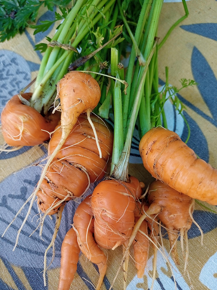 There were successes and hilarious disasters for the carrots this year. The ones that made it into the ground did brilliantly but I had more seedlings than space in the ground so I put about 30 into pots and they became the gnarly mess you see on the left. I still managed to salvage some flesh and made stock. Waste not want not.