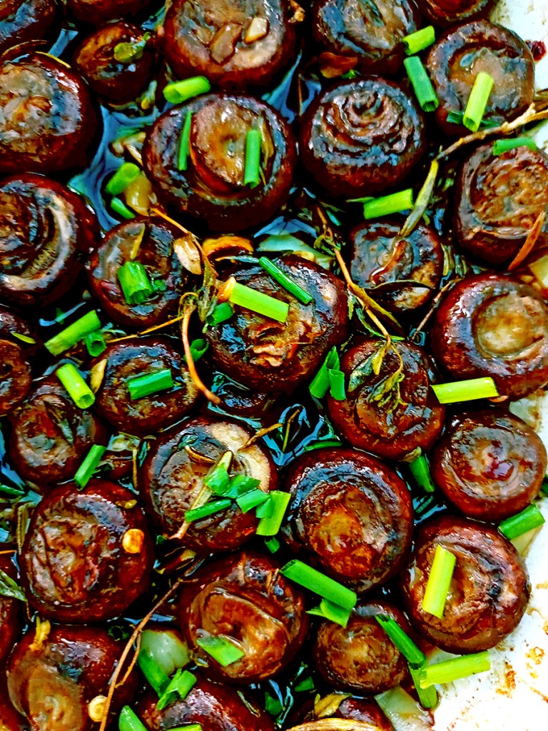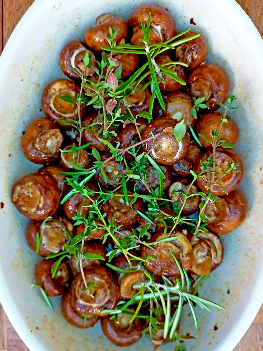 A tray of roasted mushrooms is a glorious sight to pull from the oven. The sugar and balsamic vinegar create a delicious, sticky coating. Never wash mushrooms simply use a bit of kitchen roll and wipe away any soil. You can cut the mushrooms in half or leave them whole. Any sauce left in the roasting tin is delicious so pour it over the mushrooms once you’ve dished up especially if you’re having steak.