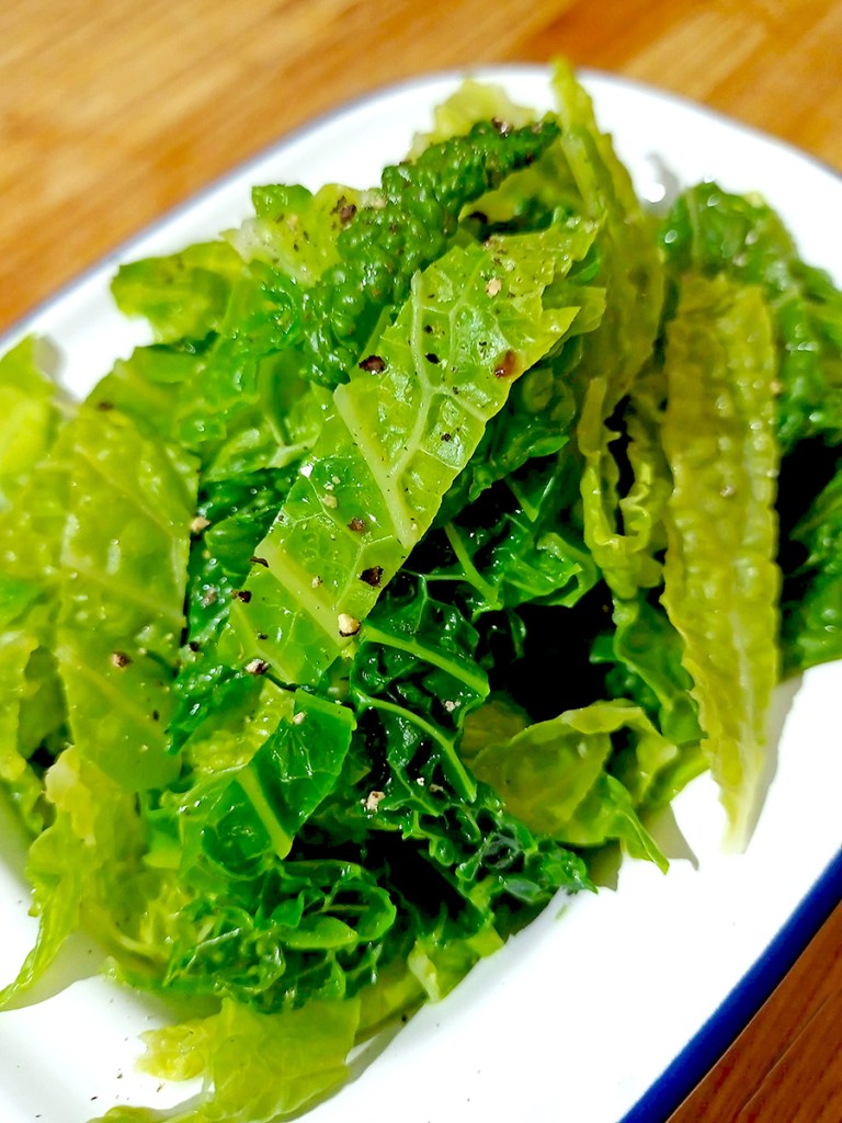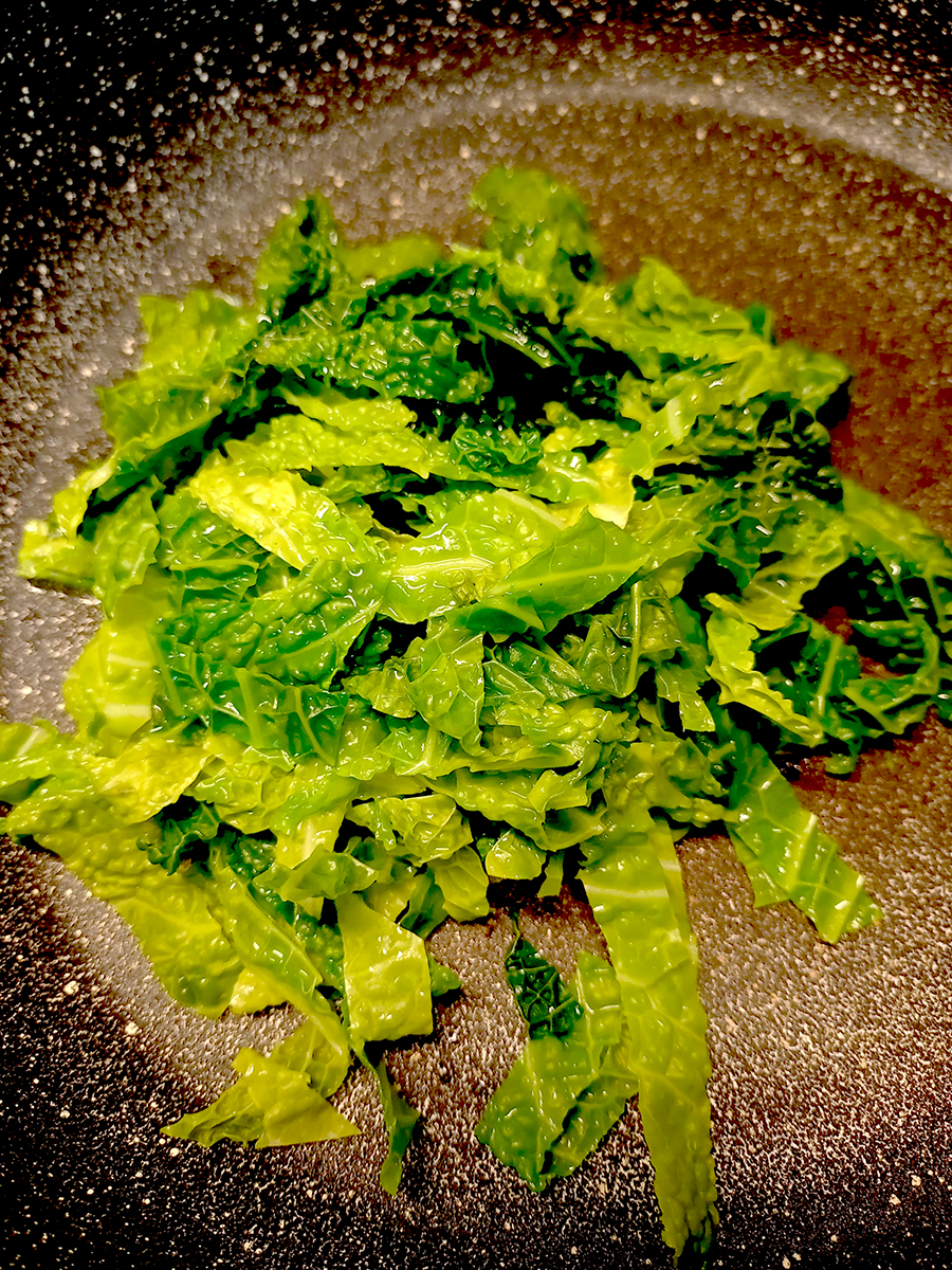 - Cook for 6-8 minutes until the cabbage is tender and the water has evaporated (stir halfway if you want to check the pan hasn’t run out of water). Add a knob of butter and grind over with black pepper if you want.