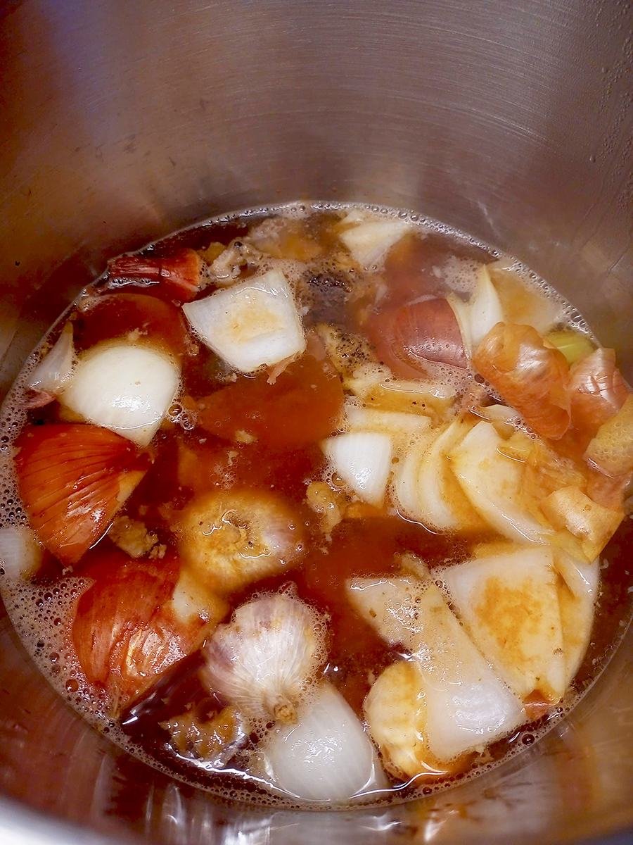 - Cook for 3-4 hours on a medium/low heat until the stock is dark and flavourful (the low heat stops the stock becoming cloudy). Store in sterilised jars in the fridge for up to a month.