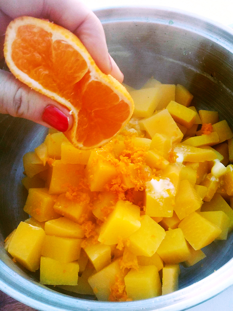 • Grate over the zest of the satsuma then squeeze in the juice and add the maple syrup. Add the butter and mash then taste and adjust the flavour with salt and pepper. A sprinkle of cinnamon is also delicious on top.