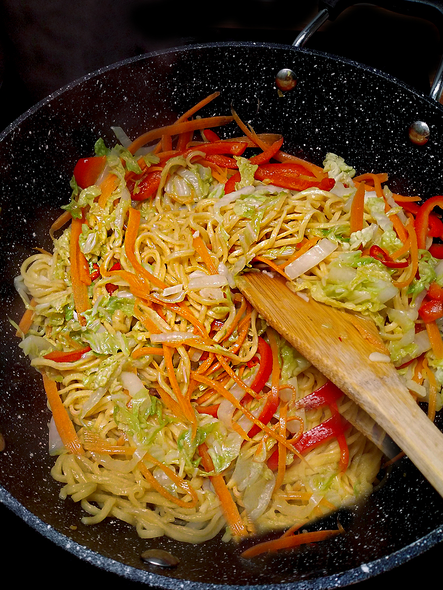 - Cook the egg noodles in boiling water until tender then drain. While the noodles are cooking make the stir-fry.