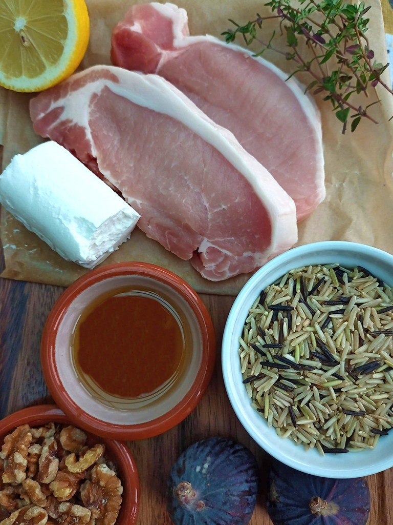 You can buy wild rice in big bags to cook from scratch or in those microwave bags to nuke for a couple of minutes. Wild rice has stacks of fibre in it which does great stuff for your digestion and blood pressure. You can absolutely serve the chops and rice with some broccoli or green beans but I love it with figs, feta and walnuts. It’s such an earthy dish with sweet and salty elements that just makes you feel good and it looks amazing too.