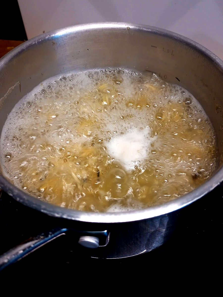 - Put the rice into 1 litre of salted water and boil until tender (about 25 minutes). Once the rice is cooking you can gather the ingredients to cook the pork chops.