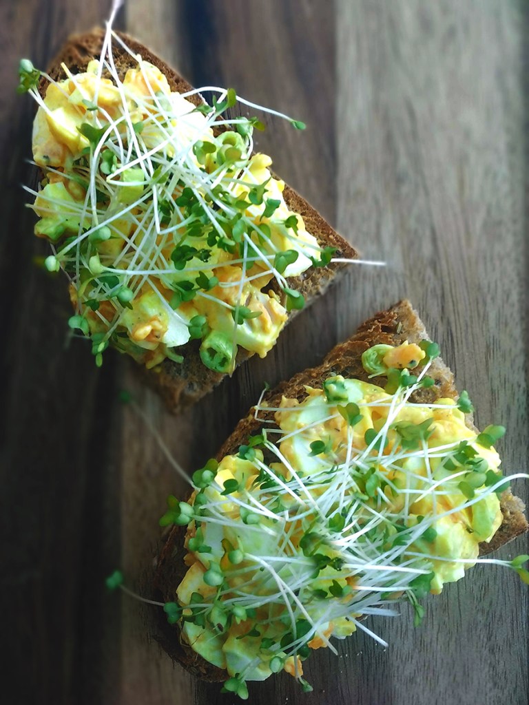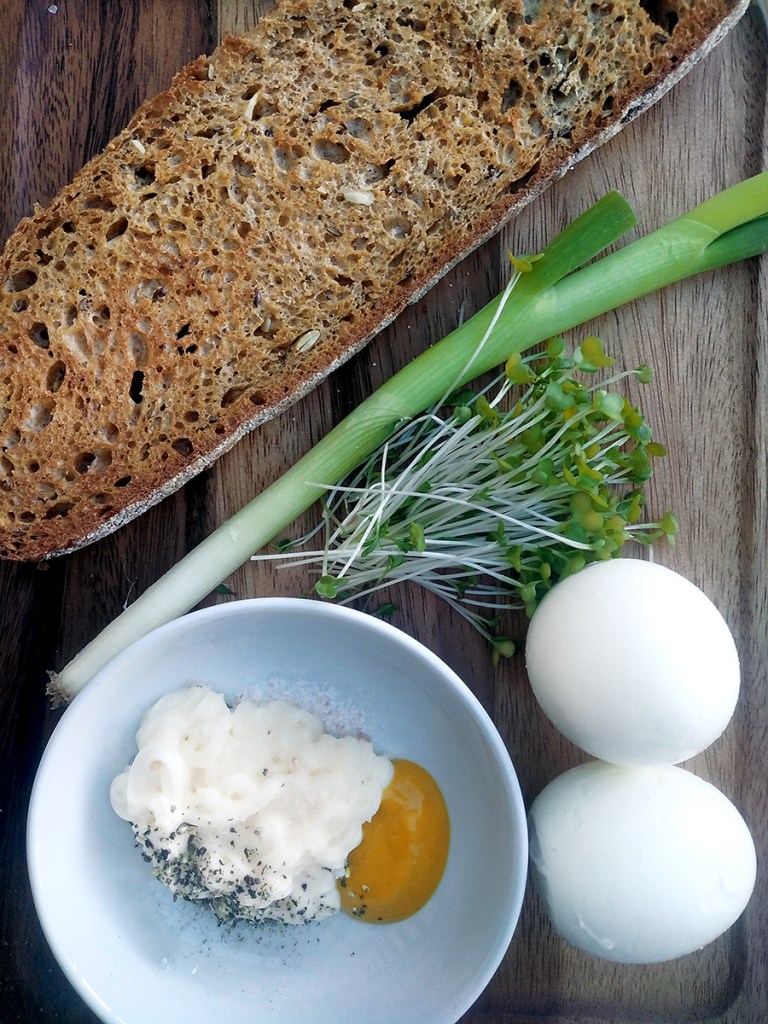 We eat a lot of eggs in our house. In Prosciutto and Egg Cups, Egg and Ham Rolls or the amazing Sausage and Egg Salad, there is always room for the humble oeuf at our table. The classic combo of egg and cress is one of my favourite lunch flavours but I always give it a bit of oomph with English Mustard. You can of course put this into a sandwich but I love it on toasted, seeded, sourdough bread.
