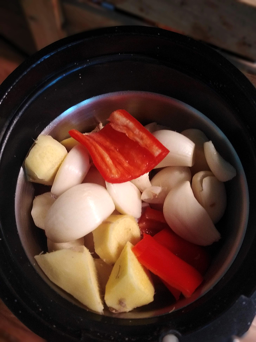 - Peel the ginger and garlic then roughly chop along with the chilli (deseed for less heat) then pop into a blender until you have a paste.