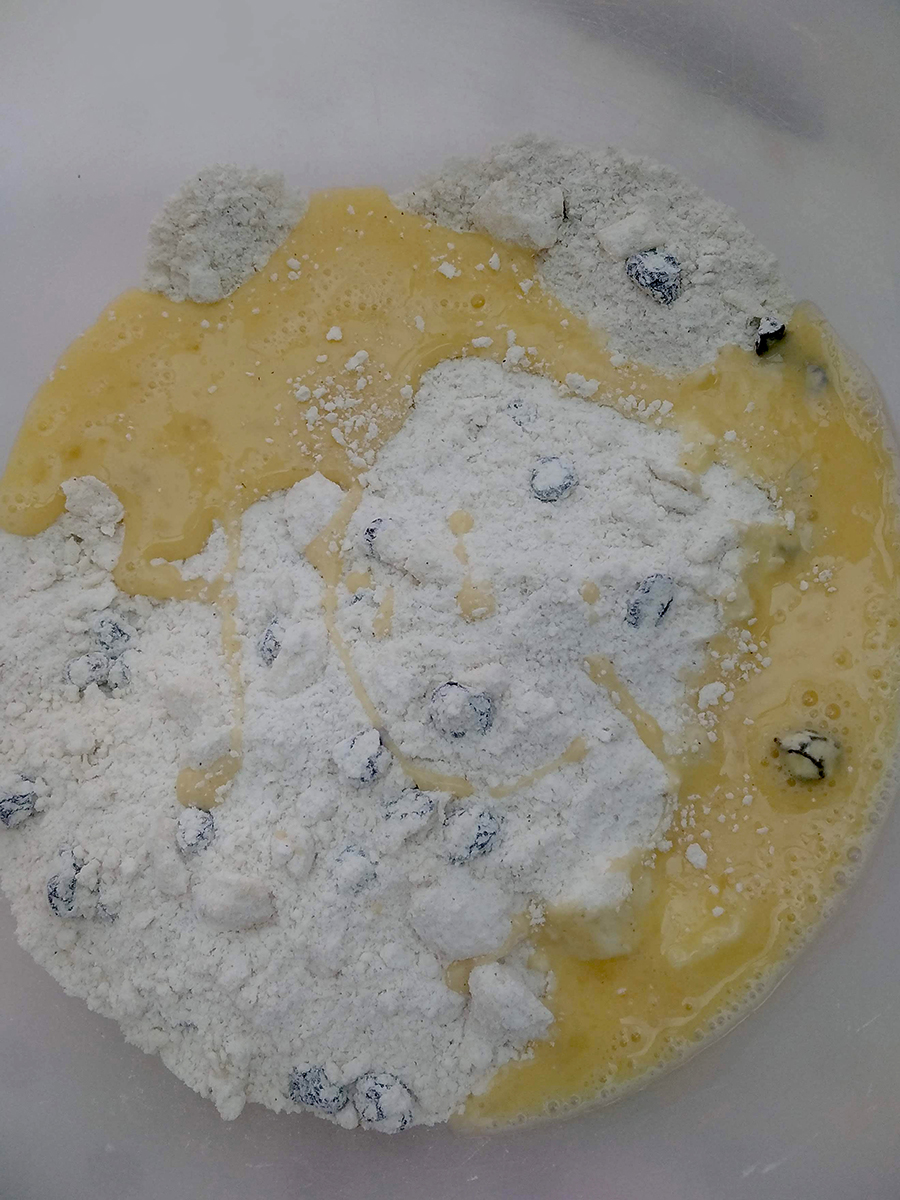 - Tip the butter cubes into the flour then use your fingers to rub the butter and flour together into a crumb then add the currants.