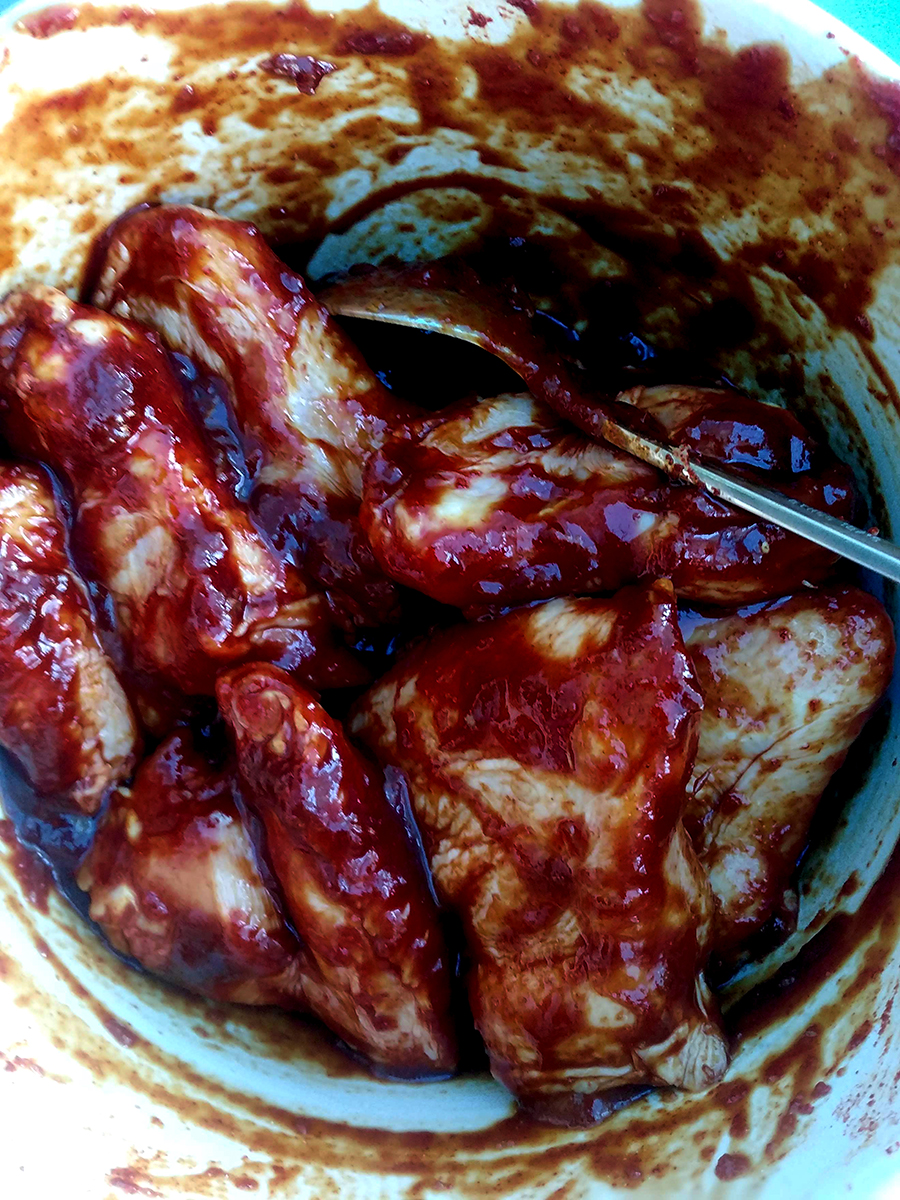 - Put the paprika and salt into a bowl and mix then dry the chicken wings and toss in the mixture rubbing the seasonings into the nooks and crannies. Pour most of the cooled marinade over the wings (keep a little back to serve with the cooked wings) then leave in the fridge for 1 to 8 hours.