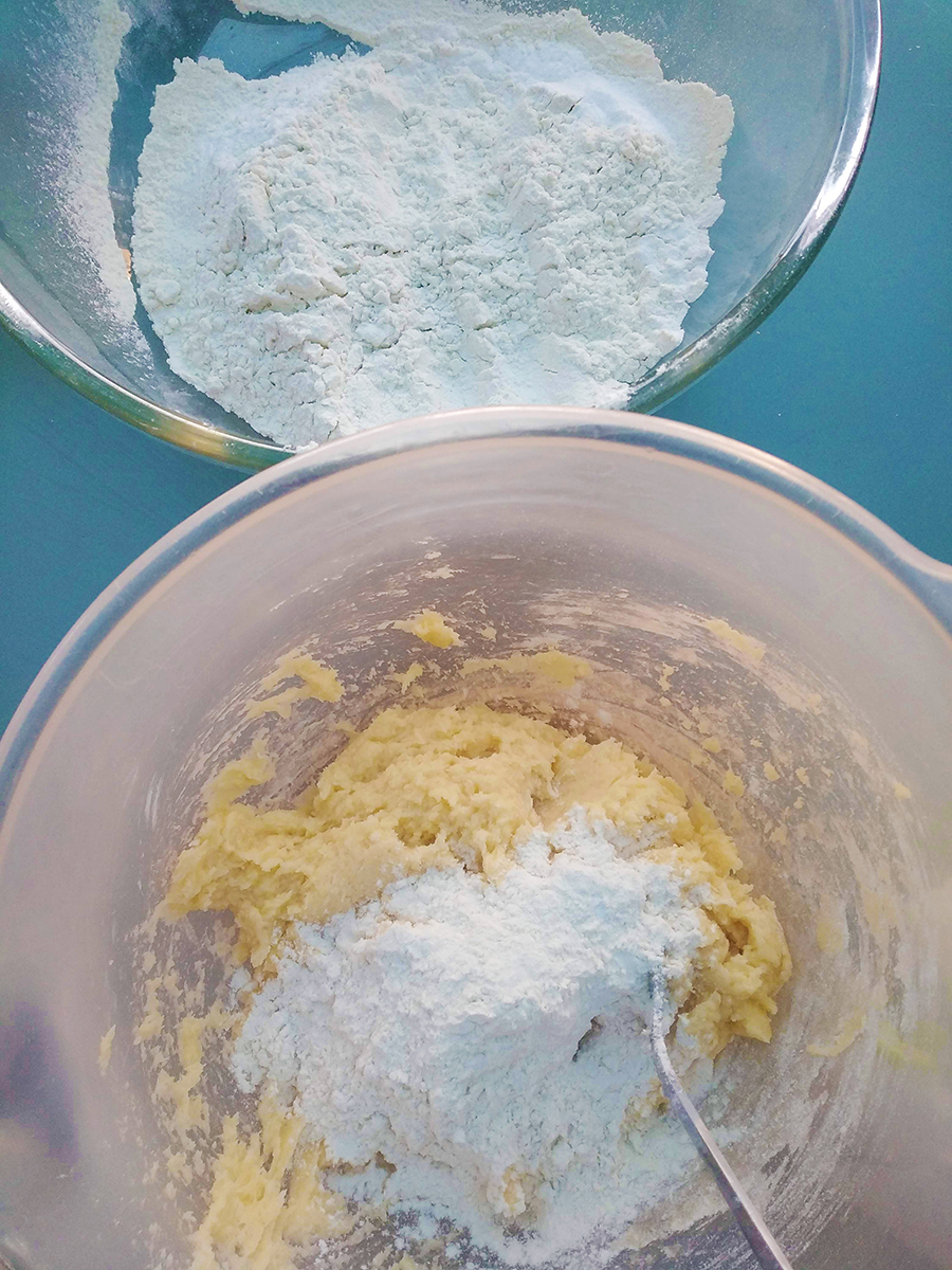 - Pre-heat the oven to 180°C (160°C Fan). Cream together the softened butter and sugar then stir in the beaten egg and vanilla extract. Sift together then flour, bicarbonate of soda, baking powder and salt.