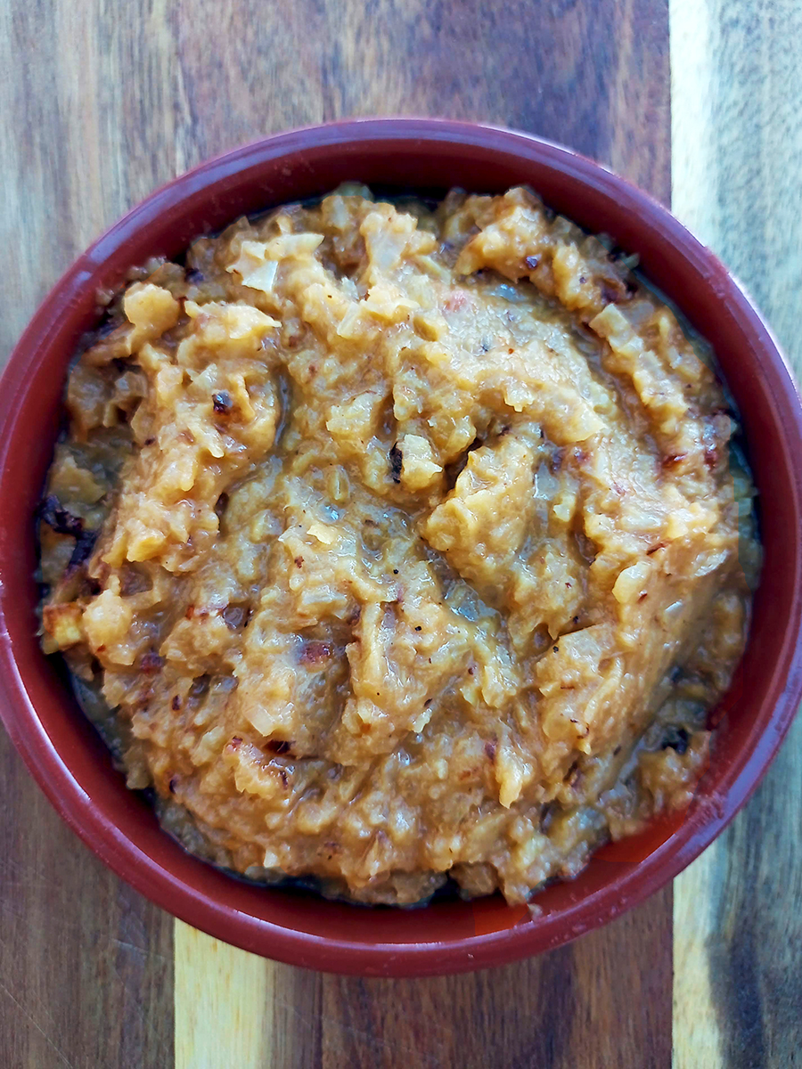 • Blend on high adding 1 tbsp of olive oil per onion then gradually adding a little water until you have the consistency you want. Store in sterilized jars and keep in the fridge for up to 4 weeks.