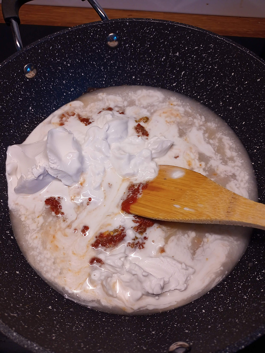 - Put the curry paste, tomato puree, sugar and soy sauce into a wok or large skillet and cook over a medium high heat for a minute then pour in the coconut milk and stir to combine.