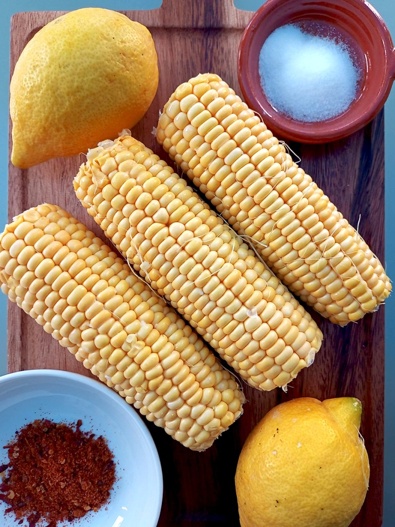 - If you want to remove the kernels from the cobs then hold each cob over a pan or dish then slice down with a large knife until all the kernels are removed. For every TWO COBS squeeze over 1 lemon then sprinkle over 1/2 tsp salt and 1/2 tsp chilli powder. Stir and serve.