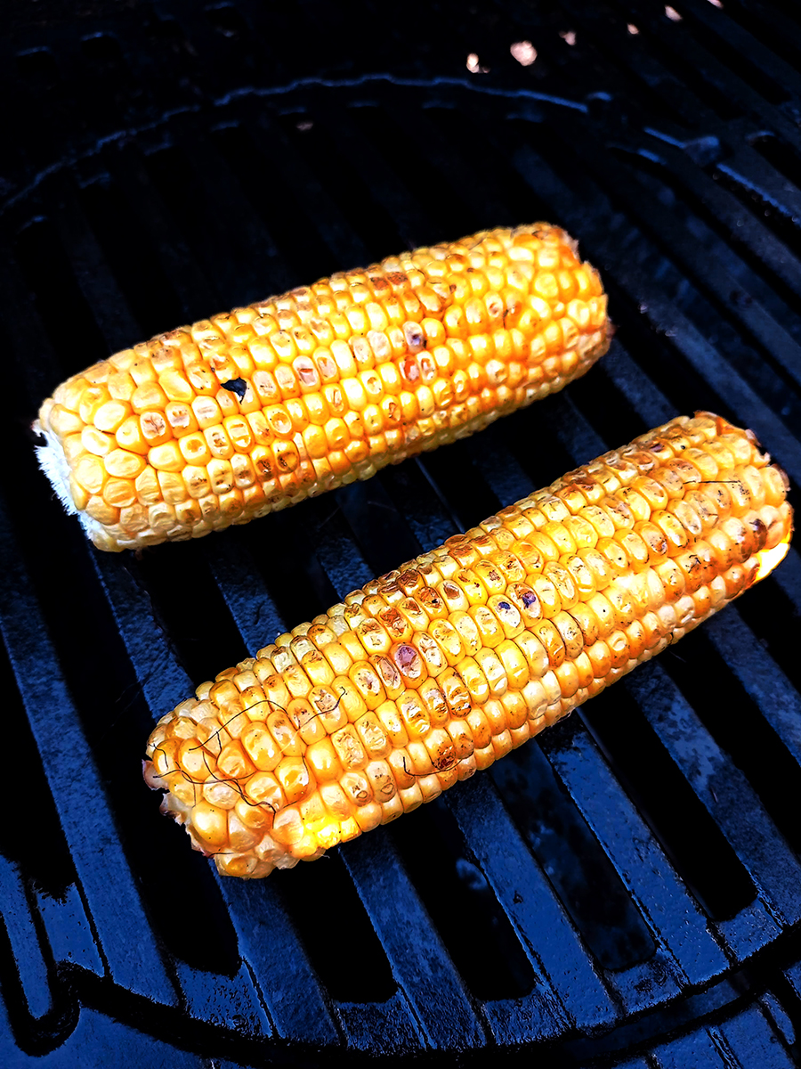 - Heat the BBQ to 200°C then oil the grill using a silicone brush. Place the cobs on the grill then closed the lid and cook for 12-15 minutes turning each cob 1/4 every 3-4 minutes.