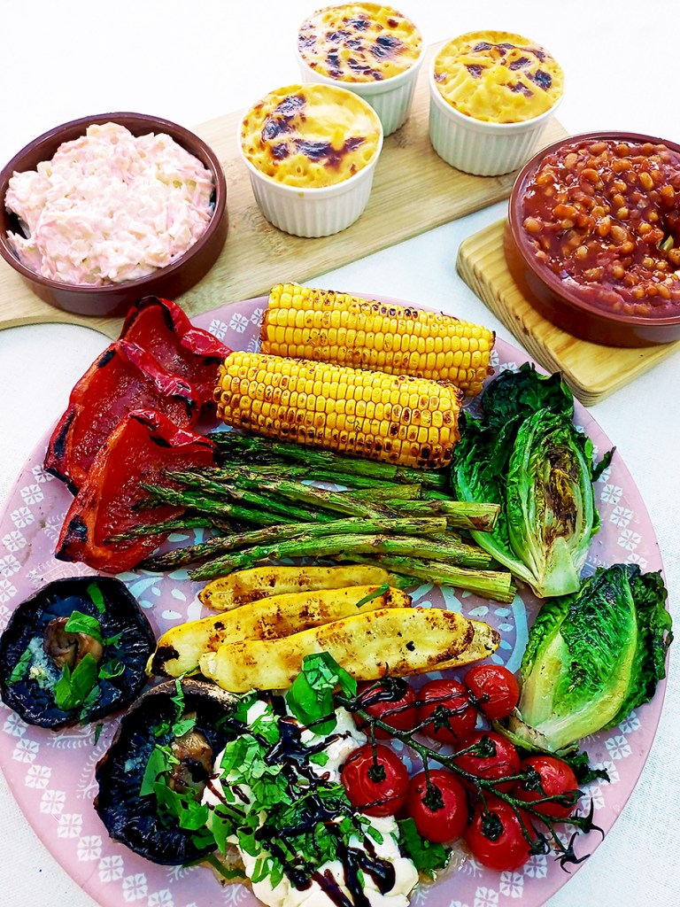 During BBQ season we grill a lot of veggies and occasionally I do a veggie only BBQ spread which is phenomenal. The key is to have a couple of side dishes to compliment your barbequed veggies so that you have a banquet on your hands. My favourite sides are Mac ‘n’ Cheese served in individual pots, Southern Style Baked Beans, Coleslaw and New Potatoes. Nobody misses the meat when the table looks this good.