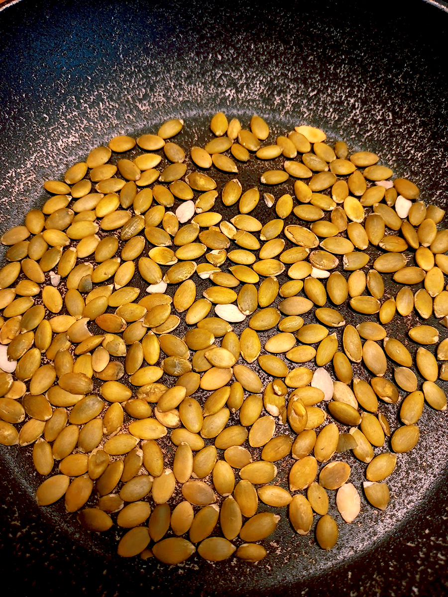 handful of green pumpkin seeds