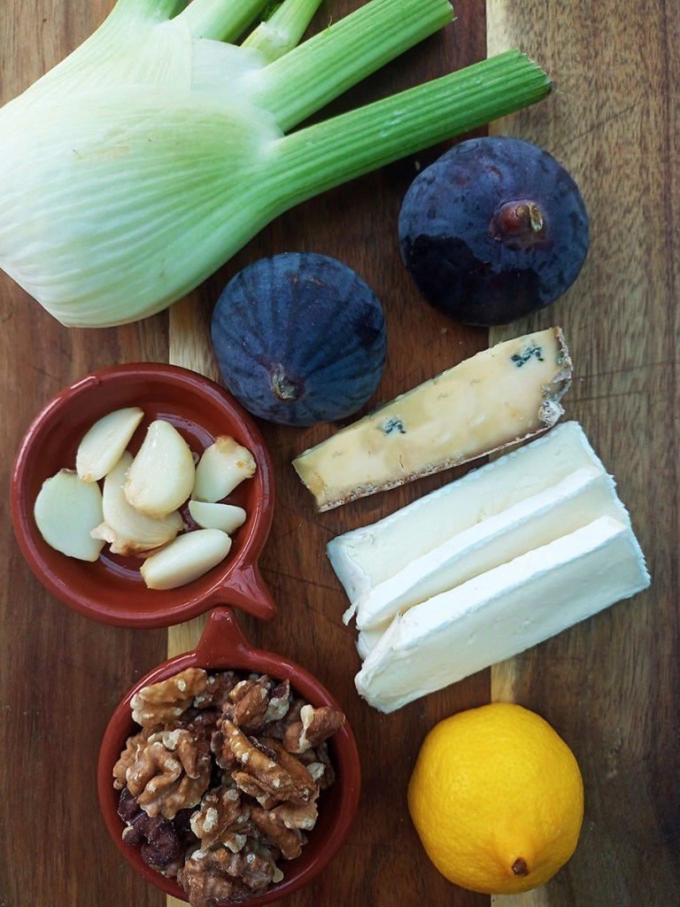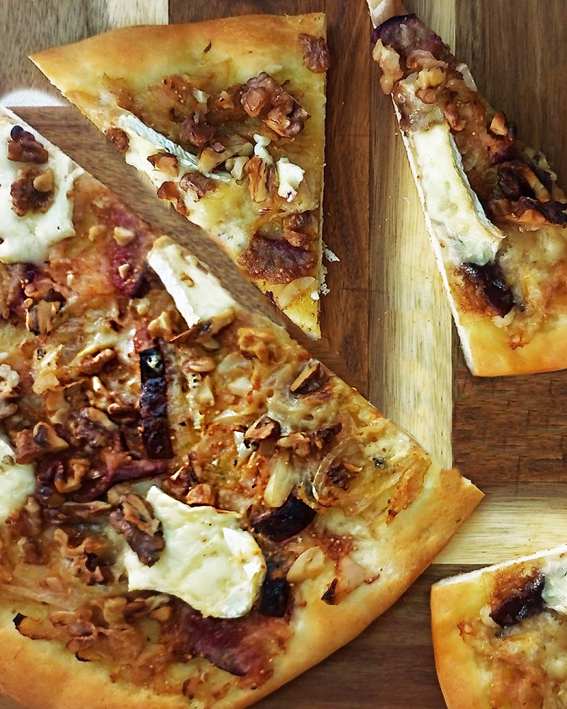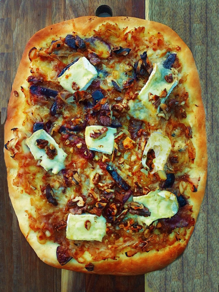 The kids are devotees of margarita pizza so that’s what I make most often, but every now and then I crave a pizza that doesn’t have tomatoes. I had a Fennel and Fig Pizza in York that was so good I couldn’t stop thinking about because it so I had to whip up my own version. At the weekend I’ll make my own pizza base but for a weeknight meal I use a pre-made pizza base to save time. I love blue cheese so that is a must for me on this pizza but it’s not essential, just add more brie instead.