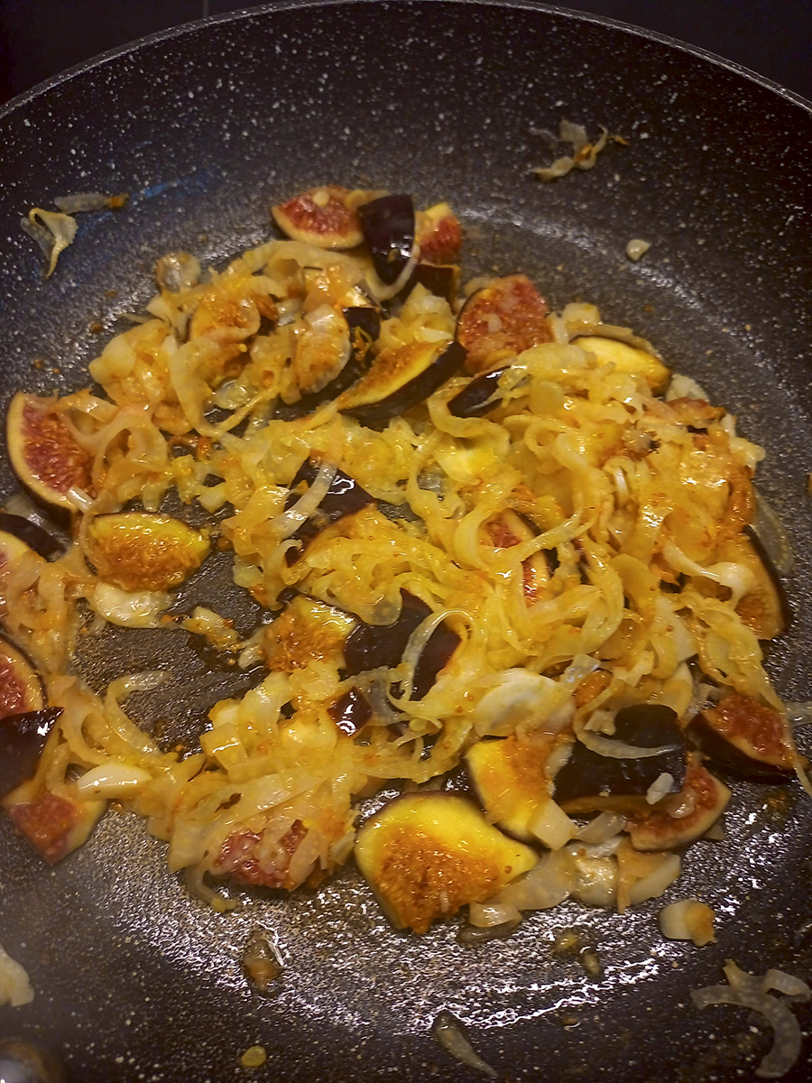 - Quarter the figs and roughly chop the garlic then add to the pan along with the salt and juice from half a lemon. Stir until the figs break down and the fennel is soft. Roll out the pizza base onto a baking sheet then tip the fennel mixture on top and spread out leaving a 2cm border.