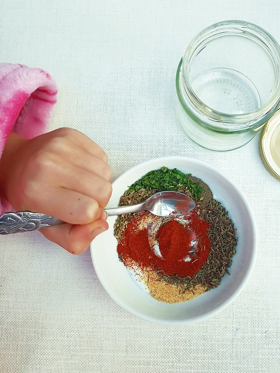 - Mix together all the ingredients then rub on your chicken. If you like a spicier seasoning add 1/4 tsp of cayenne. If you want to make a big batch then multiply the quantities equally and store in a jar or small Tupperware.