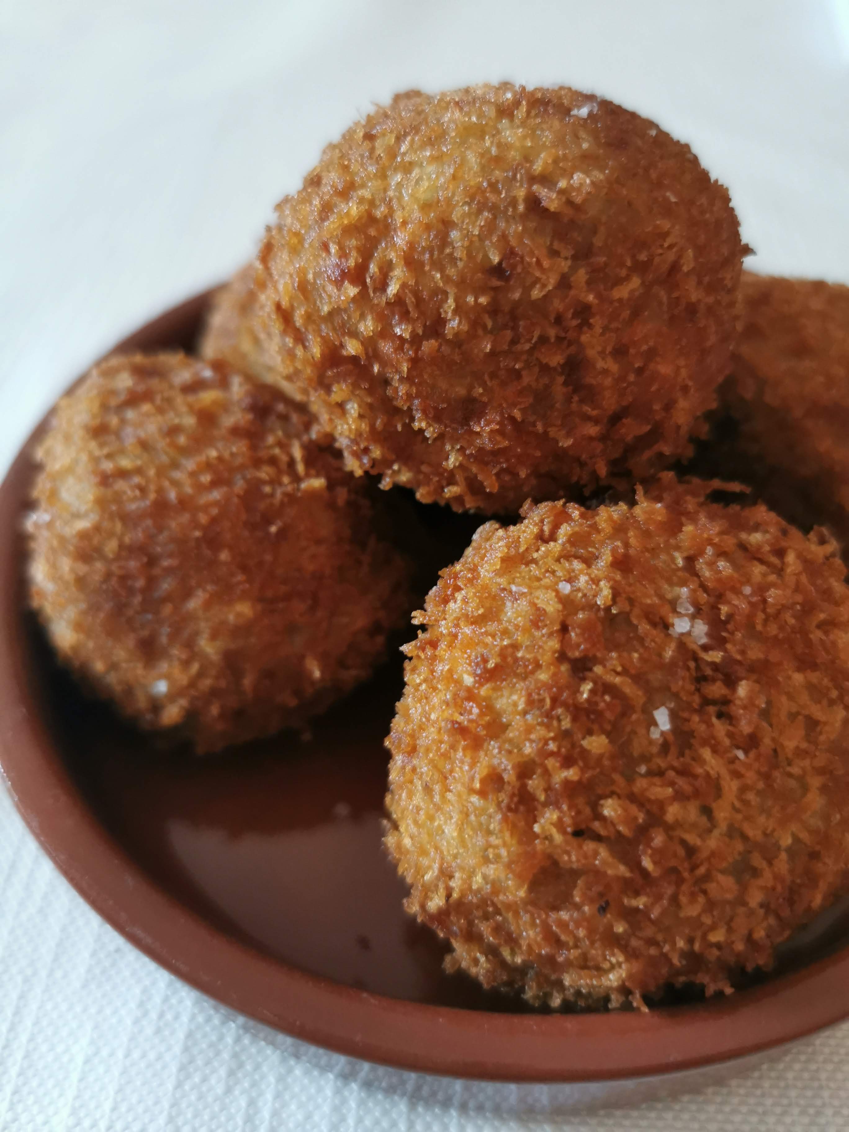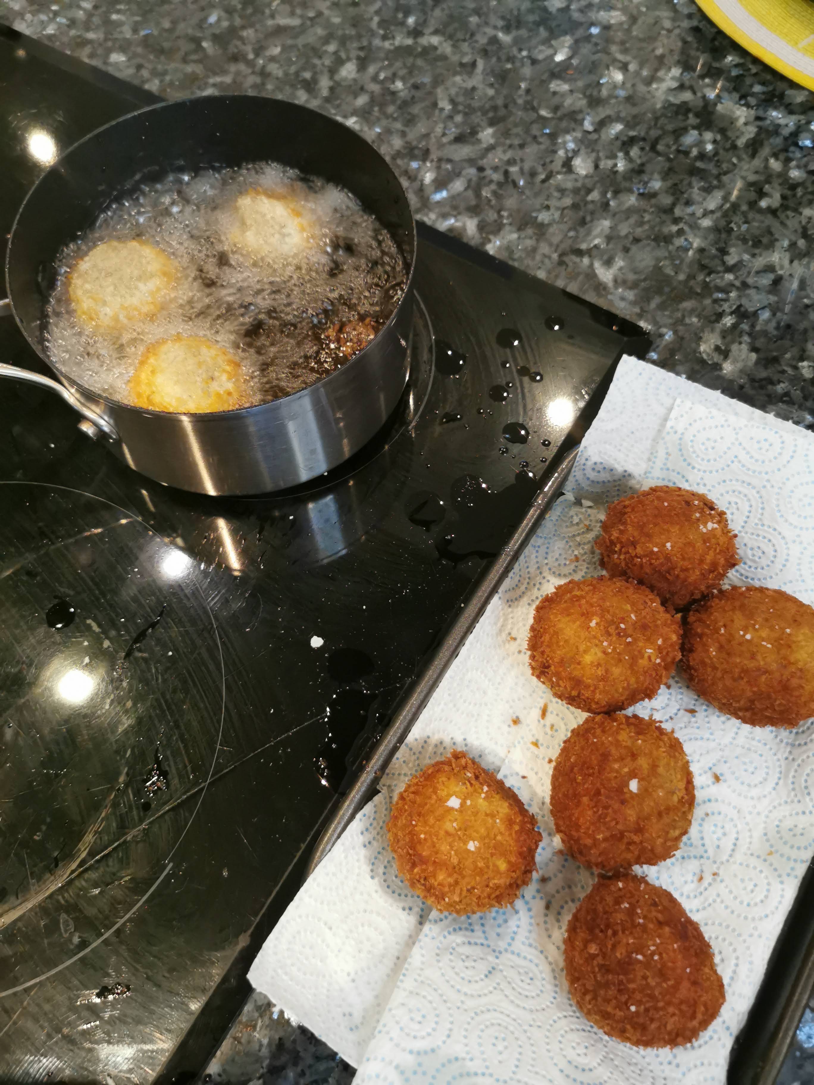 - Deep fry in small batches until golden then drain on kitchen roll and sprinkle with salt. You can keep the croquettes warm in a low oven until ready to serve.
