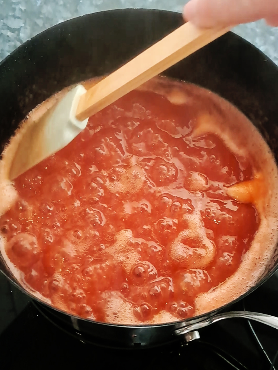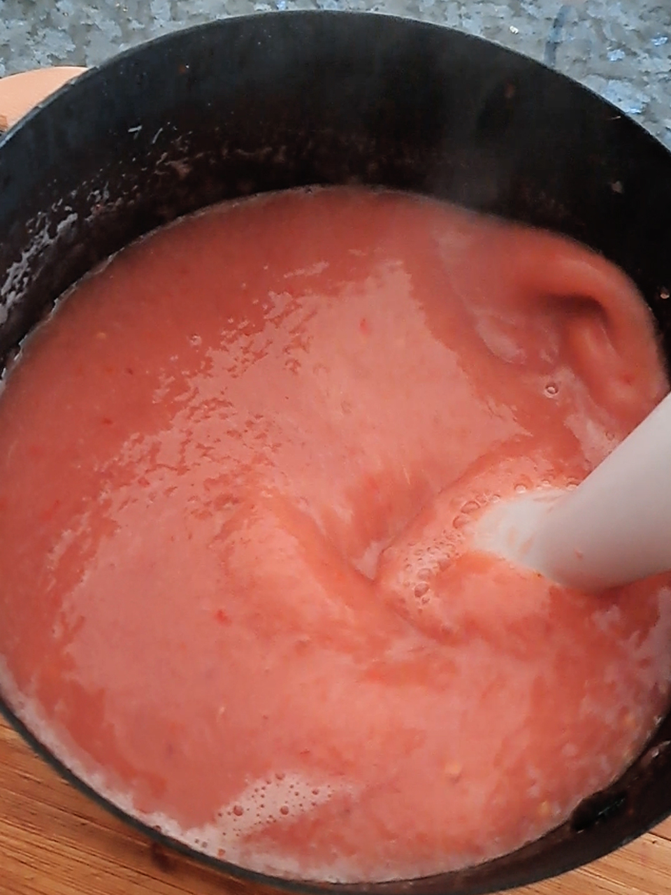 - Blend with either a stick or jug blender until smooth then return to the heat and keep stirring so that the sugar doesn’t clump. Keep stirring until the sauce starts to thicken more.