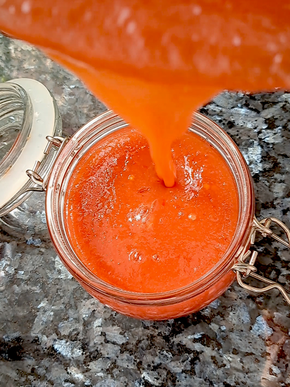 - The sauce will thicken as it cools too. Decant into clean jars or containers. This sauce is suitable for freezing.