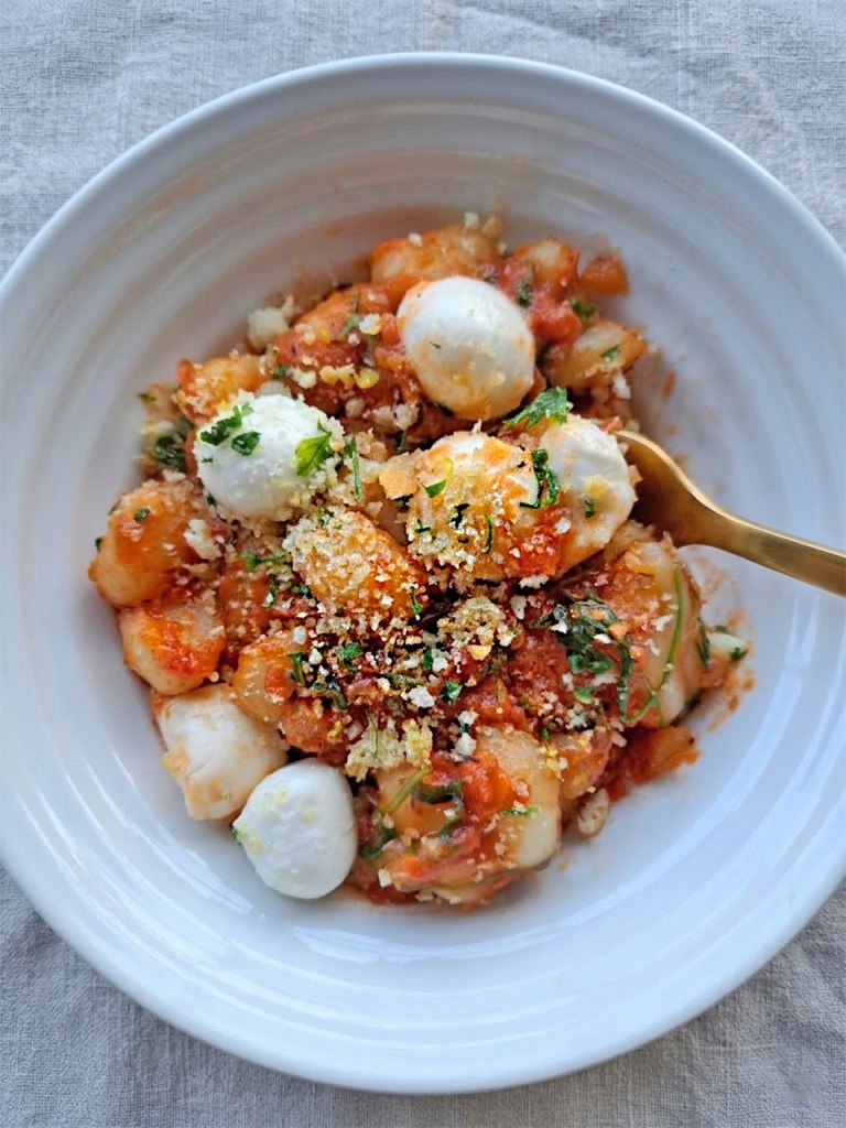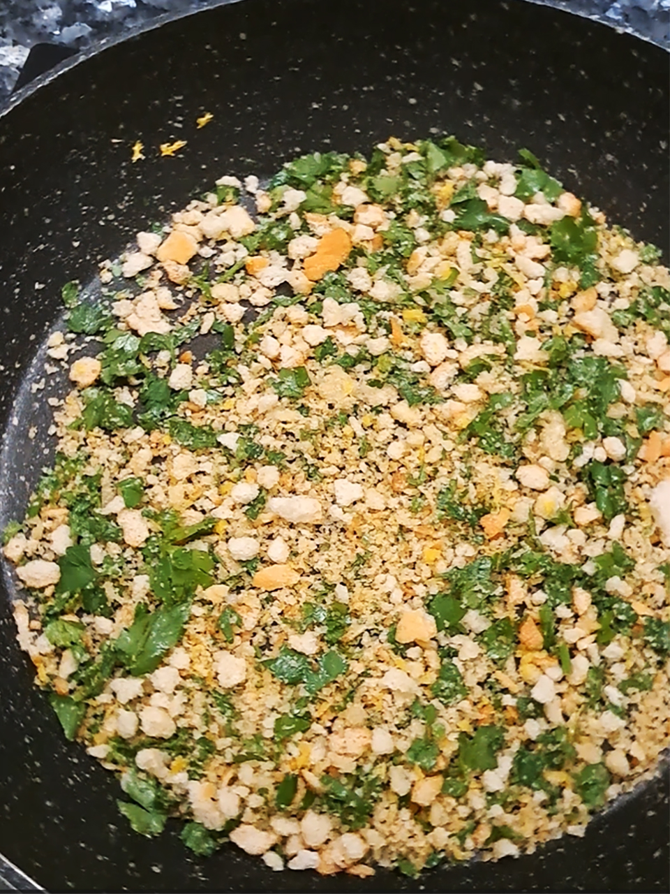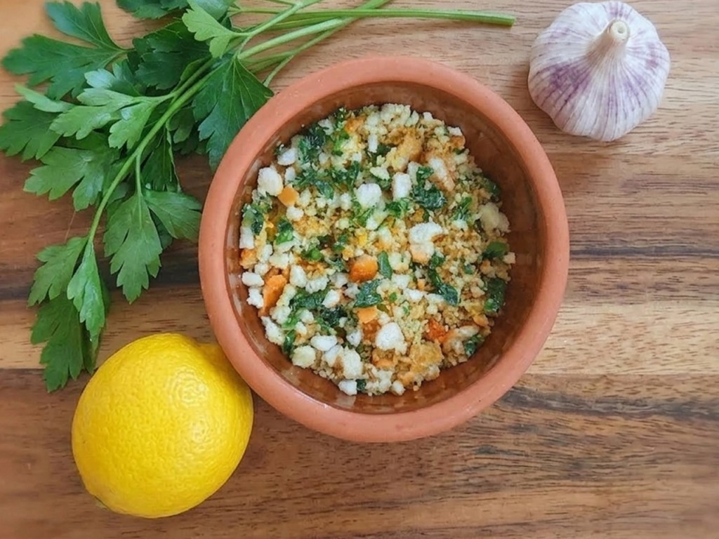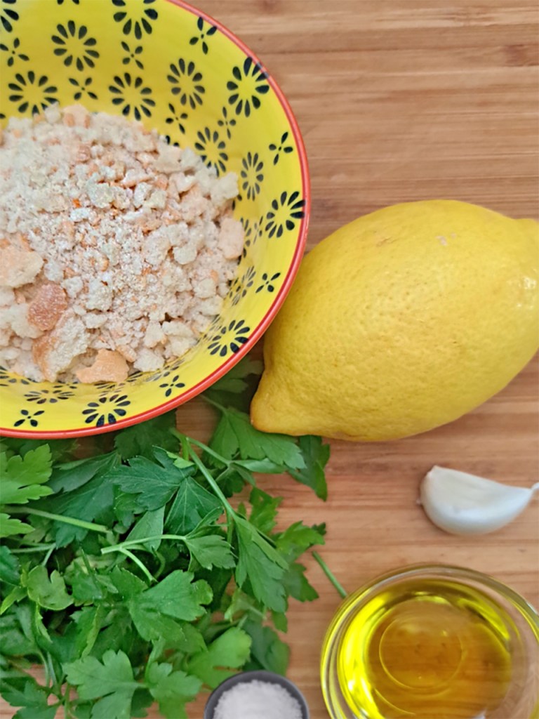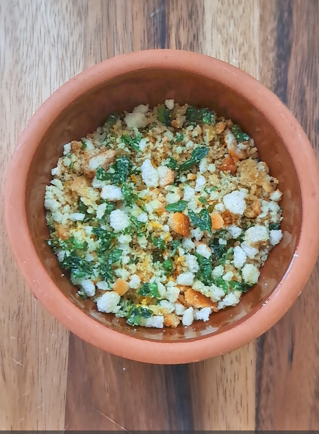 A flavour topping can make even simple dish sing and this crunchy topping is a superstar. I love adding gremolata (which is chopped fresh parsley, lemon zest, salt and lemon zest) to dishes and this is essentially breadcrumb gremolata. By warming the flavours gently they release their oils and become beautifully fragrant. This crunchy mix keeps in an air-tight container for a couple of weeks. I add it to pasta, gnocchi and salads for extra texture and flavour.