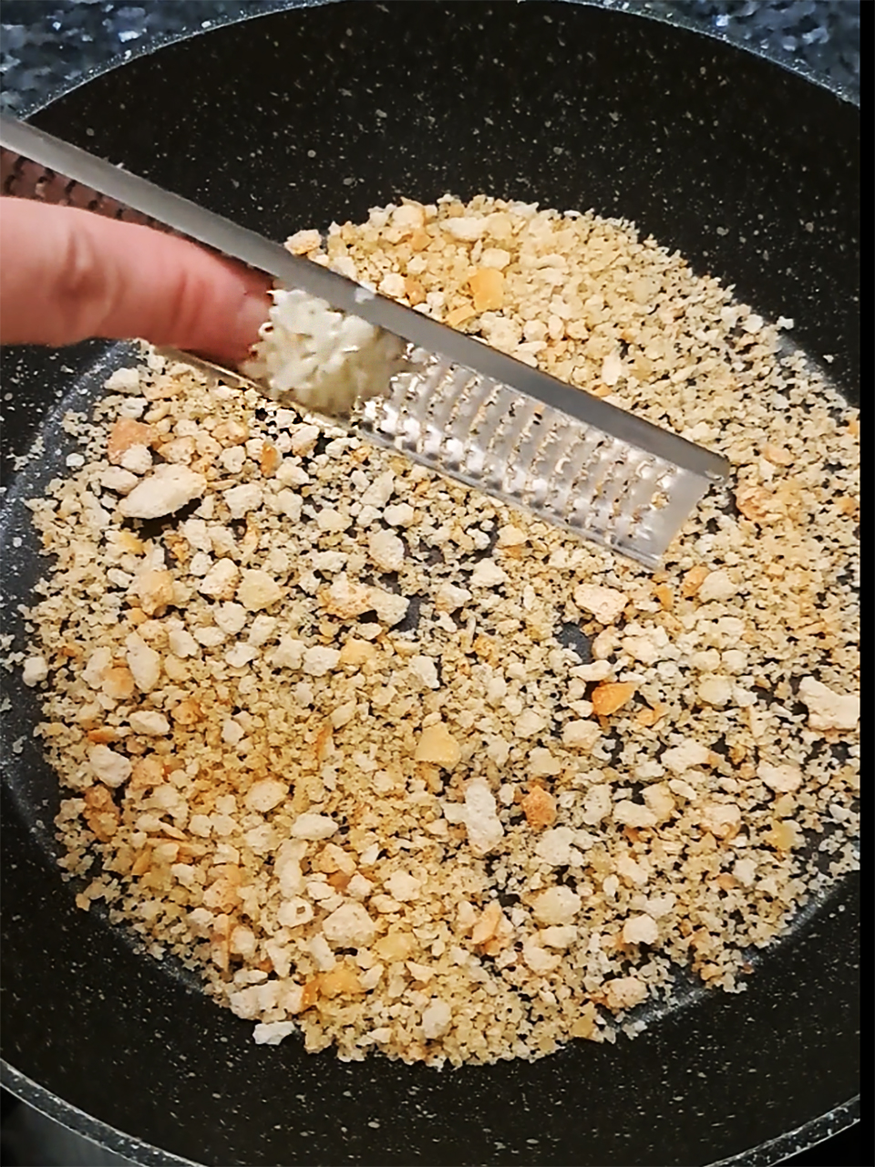 - Use a microplane to grate the garlic into the pan then heat through gently until fragrant.